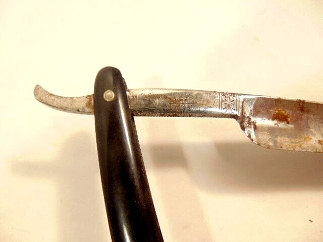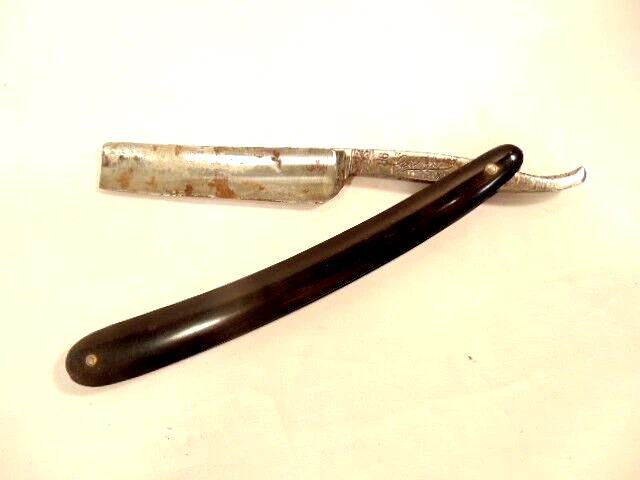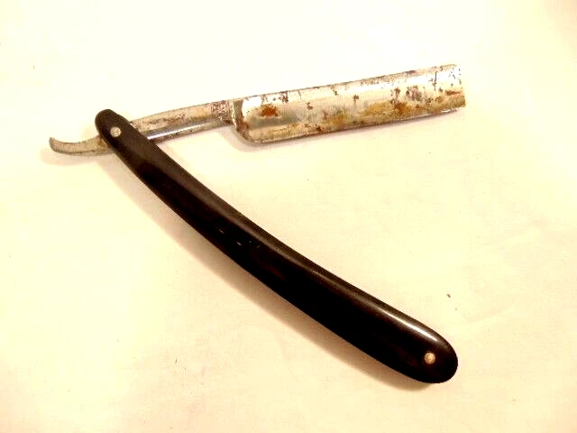 Here is a pre-owned older straight razor labeled "Griffon XX". The razor measures 6 1/8th inches long. The blade is about 5 1/2 inches long and 5/8th inches wide. The razor blade shows corrosion and wear. Please see pictures and ask any questions . Thank you for looking. (Inv 25,538)