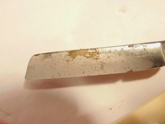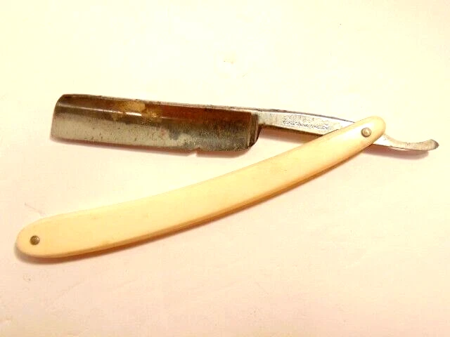Here is a vintage straight razor marked C.V. Heljestrand Eskilstuna Sweden. It has a white handle and measures about 6 inches from end to end when closed. The razor shows some corrosion, chips. dirt, staining and normal wear. Please see the pictures and ask any questions. Thank you for looking. (Inv A27,840)