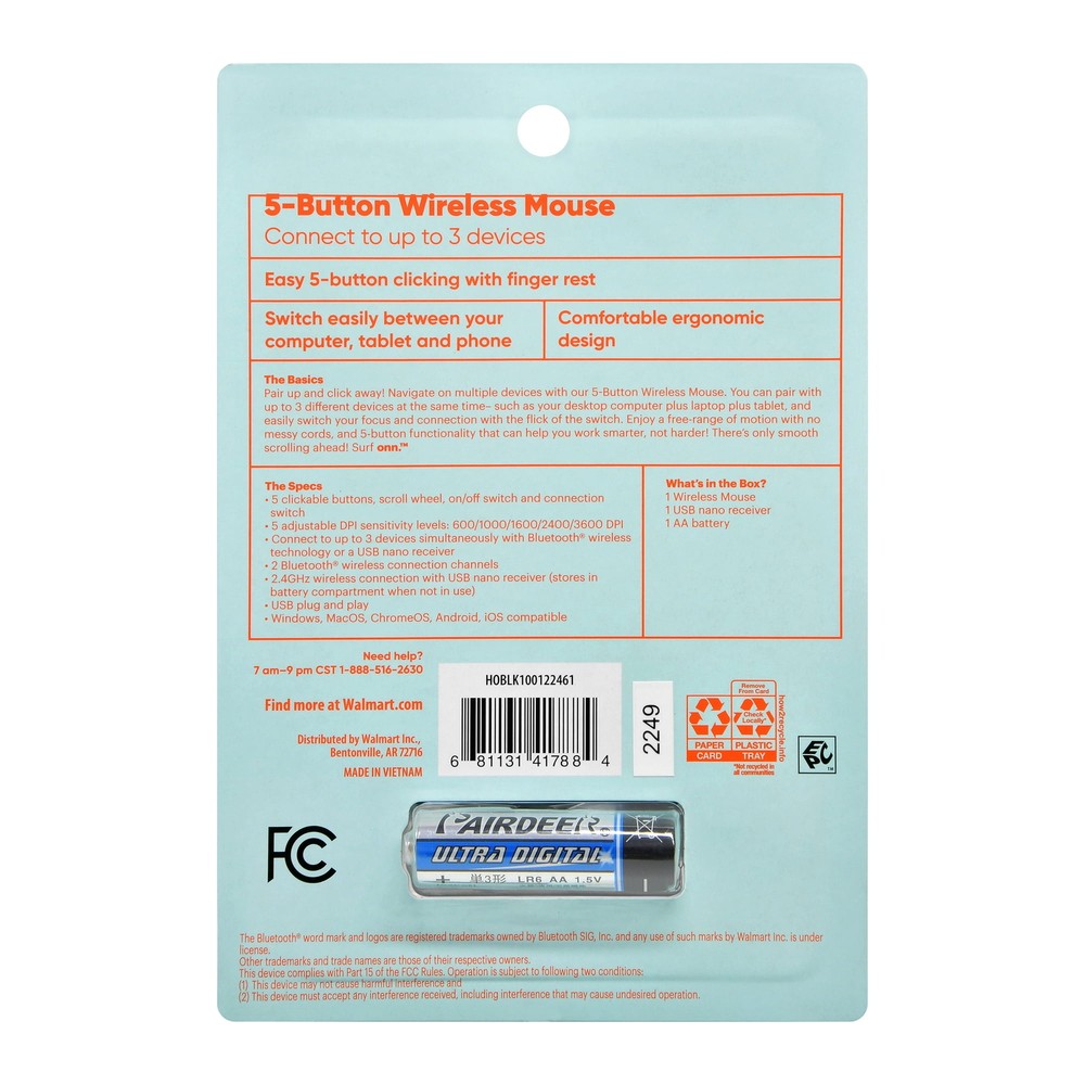 Elevate your computing experience with the onn. 5-Button Wireless Bluetooth Ambidextrous Mouse, designed for those who value comfort, functionality, and style. This sleek black mouse comes equipped with a USB-A Nano Receiver, ensuring a reliable and seamless connection to your device. The ambidextrous design accommodates all users with its ergonomic build, while the Bluetooth connectivity offers hassle-free pairing with your wireless devices. Five responsive buttons allow for efficient navigation, making this mouse a great companion for both work and play.