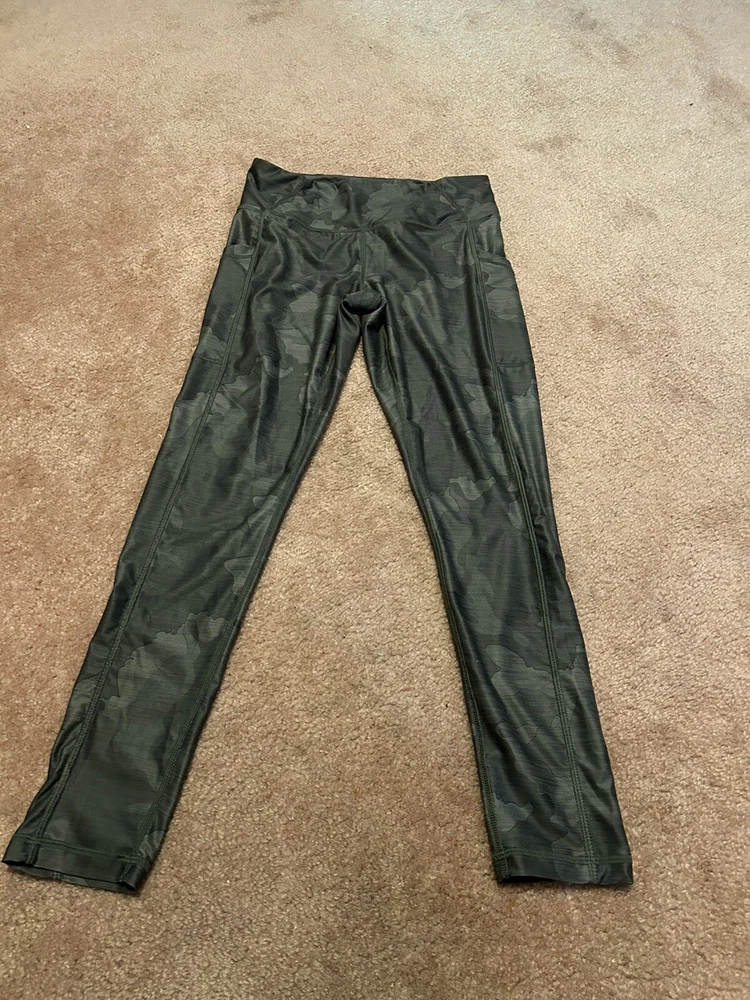 Elevate your activewear collection with these stylish prAna Electa II leggings. Made from recycled material, these leggings feature a camouflage pattern in shades of green. The pull-on closure and slim fit offer a comfortable and flattering look, while the compression area on the leg provides extra support during yoga or other activities. With a waist size of 28 inches and an inseam of 27 inches, these leggings are a regular fit and suitable for women of all sizes. The Electa II leggings also come with handy pockets, making it easy to carry your essentials while you workout. Perfect for winter, summer, or spring, these leggings are lightweight, breathable, and machine washable. Whether you're hitting the gym or doing some yoga at home, the prAna Electa II leggings will keep you comfortable and stylish.