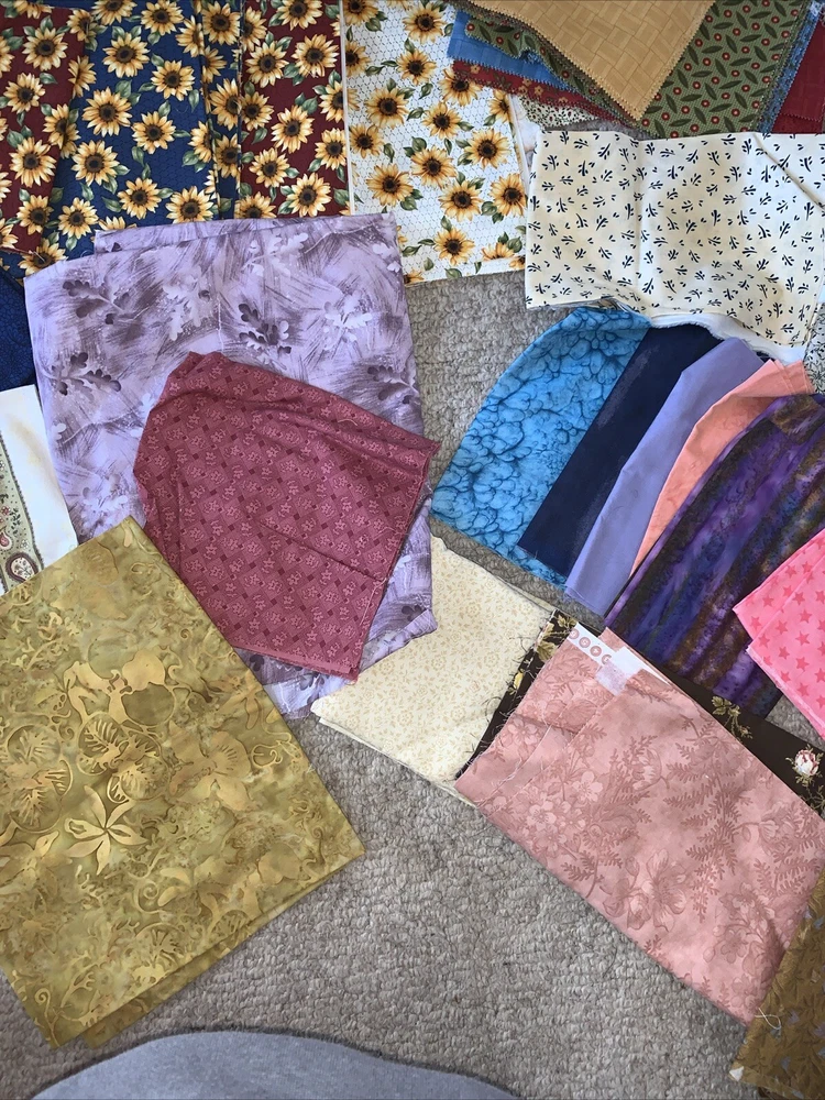 This lot of fabric scraps is perfect for any quilting project. Made of 100% cotton, these pieces are soft and durable, making them ideal for creating unique and beautiful quilts. The lot includes a variety of colors and patterns, suitable for any theme or style. Whether you are a seasoned quilter or just starting out, this lot is a great addition to your collection. With a range of lengths and amounts, you will have plenty of fabric to work with. Don't miss out on this opportunity to add some special touch to your next project.