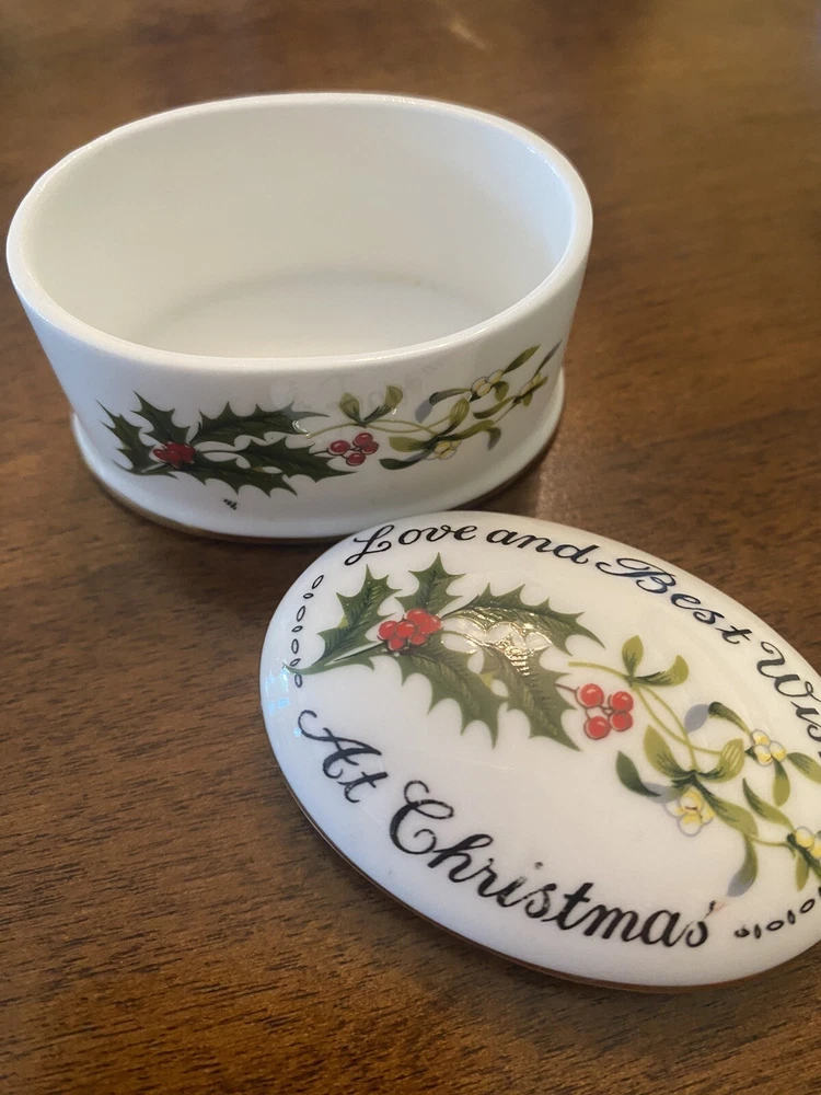 Staffordshire England fine bone china Christmas gift trinket box. Like no. No chips or scratches.