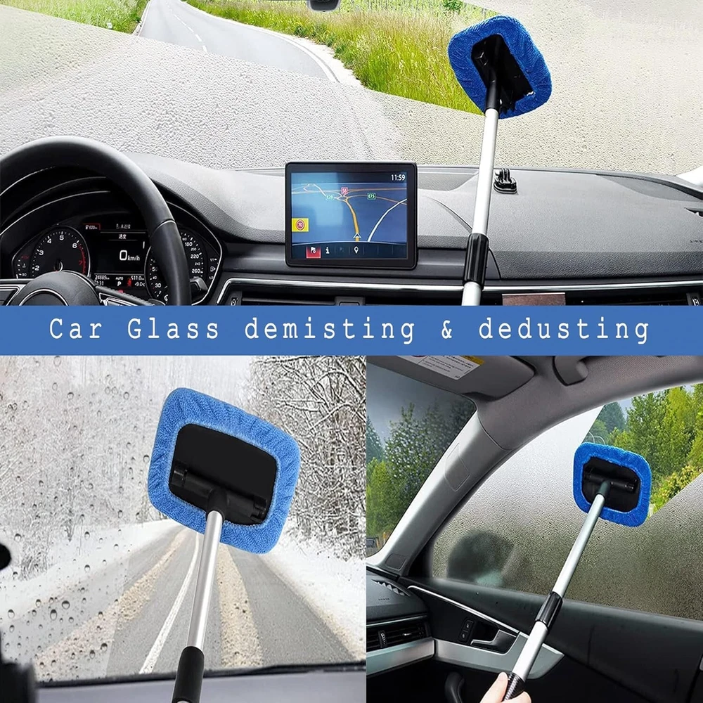 tCar Windshield Cleaning Tool inside Window Cleaner Defogger Brush Kit Microf... Color: Square Set FAST & EASY TO USE: The windshield cleaner tool is designed with extendable handle and pivoting head, makes easily clean car window interiors and exteriors without straining your back. Extendable car washer kit is ideal for most cars, SUV. INNOVATIVELY DESIGN: The handle of auto windshield cleaner is ergonomically designed which is anti-slip, comfortable to use, securely locks in place and can be extended from 14.6 in to 22.8 in, perfect for the bottom of car windows and the hard to reach area. 180°Swiveled Square Head: Designed with pivoting Square head to make a complete contact to the glass, which can be rotated 180 degrees to fit the glass surface very well, easy to clean the bottom of car windows or some hard-to-reach areas, easy to use and effortless.