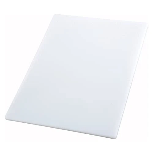 12" x 18" x 1/2" white cutting board CBWT-1218. Temperature range from 176 Degree Fahrenheit to 196 Degree Fahrenheit. Made of polyethylene plastic. Non-porous surface so won't stain or absorb juices. Temperature range from 176 to 196 Made of polyethylene plastic Non-porous surface so won't stain or absorb juices Dishwasher-safe NSF certified product