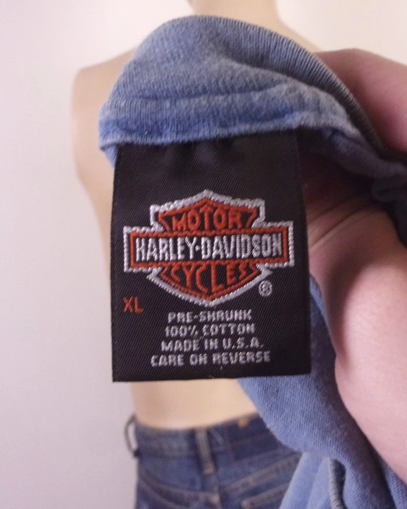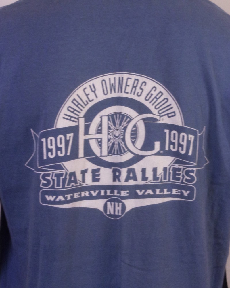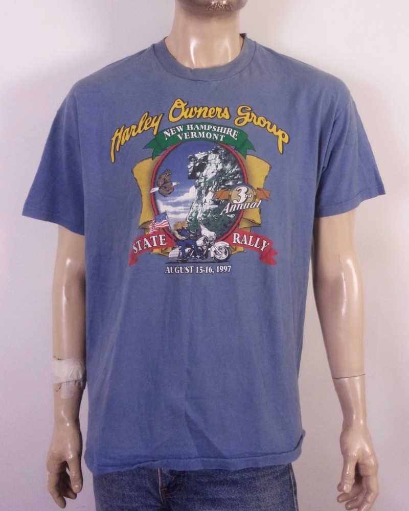 This vintage 90s single stitch Harley Davidson Owner's Group T-Shirt is a classic piece featuring a graphic print of the iconic Harley Davidson logo and HOG 1997. Made of soft cotton material, this XL gray t-shirt has a crew neck and short sleeves, making it a comfortable and stylish addition to any wardrobe. The double-sided design adds an extra touch of nostalgia, perfect for any Harley Davidson enthusiast looking to show off their love for the brand from the 90s era. Pit to Pit: 23.5 Length: 27.5