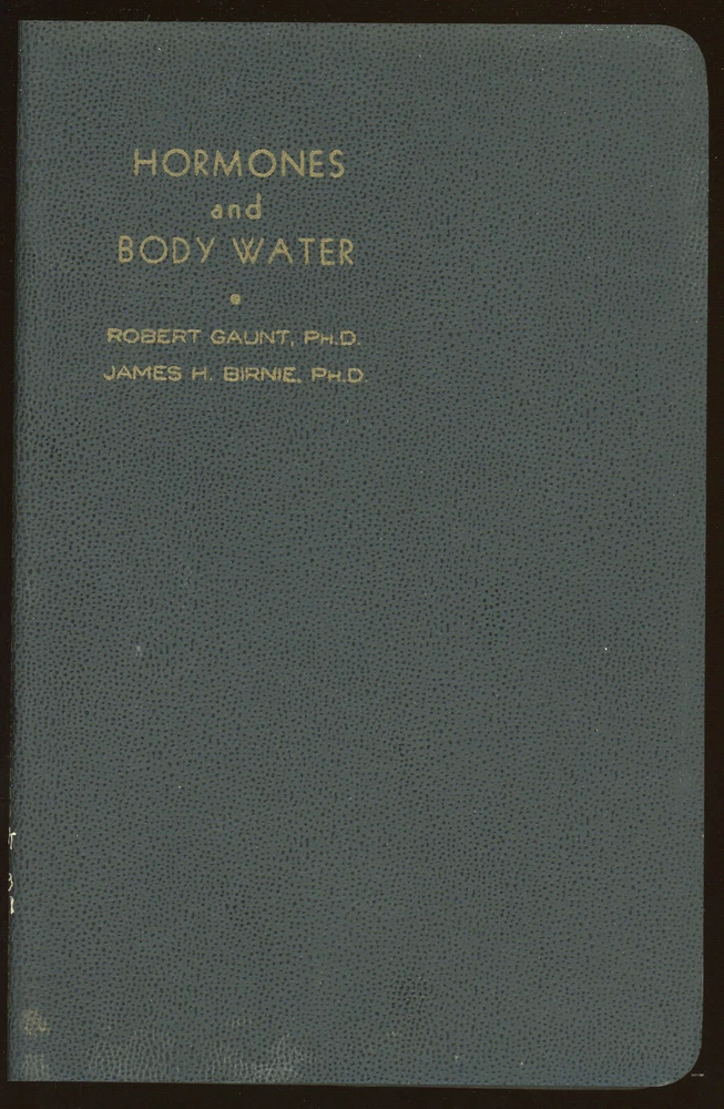 vintage Medical: HORMONES AND BODY WATER by Robert Gaunt and James Birnie. 1st Edition. Pictures are of the actual book. Printed 1951. Published by Charles C Thomas Publisher. 5 3/4 inches wide by 8 3/4 inches tall. No dust jacket. Black leatherette covers, round corners, with yellow stamping on spine. 57 pages. 5 illustrations, all drawings. Condition: Ex-library: white lettering on lower spine. The covers show light shelf wear: spine edges not rolled; page edges unmarked. Inner pages are clean, tight, and unmarked; some toning (light tan). Money back upon return if not satisfied or any problems with shipping within the US. Due to changes at the US Postal Service, we can no longer guarantee delivery on international mail. Thanks for looking. International Buyers – Please Note: Import duties, taxes, and charges are not included in the item price or shipping cost. These charges are the buyer's responsibility. Please check with your country's customs office to determine what these additional costs will be prior to bidding or buying. 02/13/22 0/7