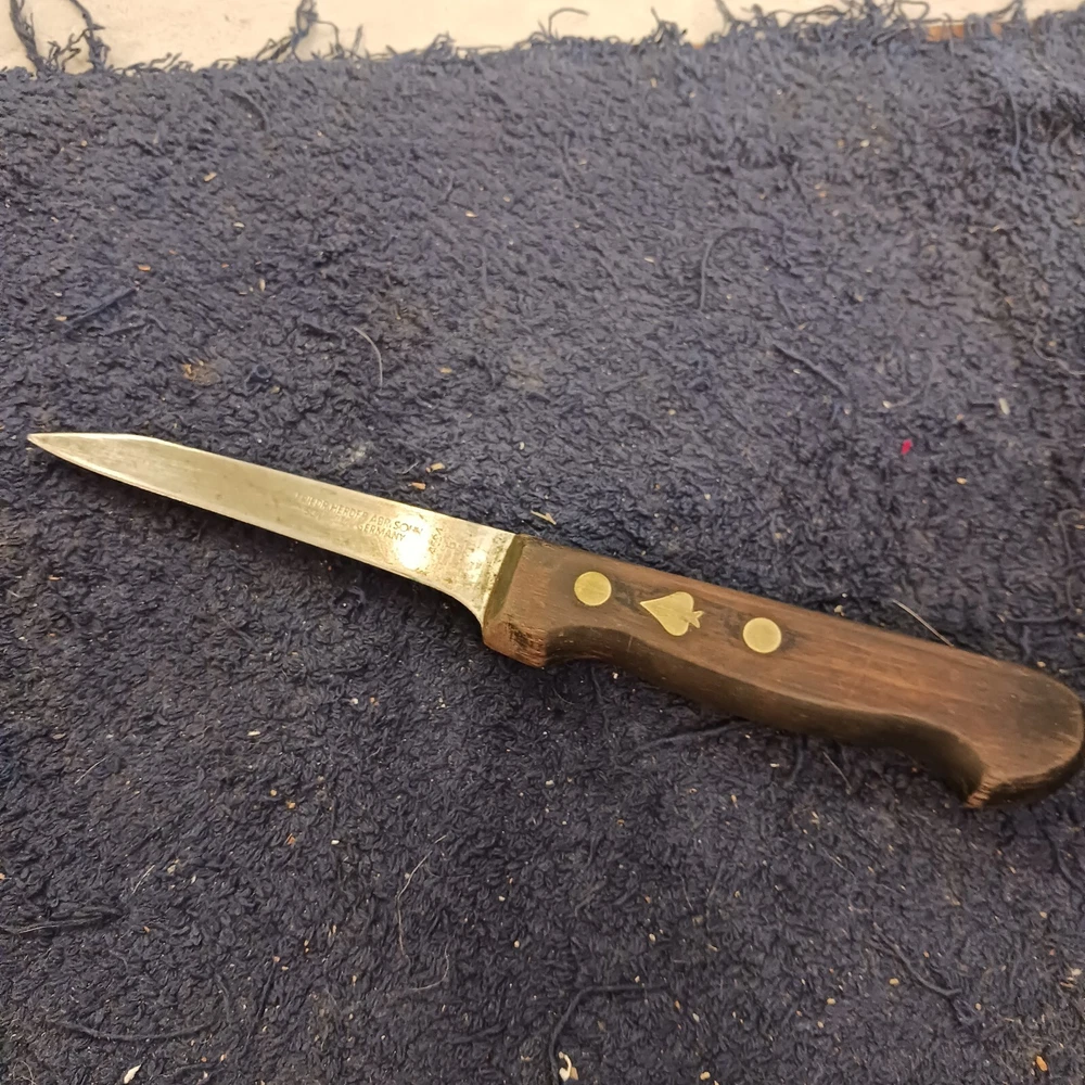 This vintage Friedr Herder Abr. Sohn Solingen Germany chef kitchen knife is a rare find for collectors and culinary enthusiasts alike. Made in Germany with a rich history dating back to the early 20th century, this folding knife features a classic design and high-quality craftsmanship. The Solingen brand is known for producing top-notch knives, and this piece is no exception. Whether you're looking to add to your collection or upgrade your kitchen tools, this vintage knife is sure to impress with its timeless appeal and functionality.