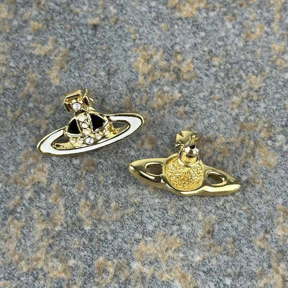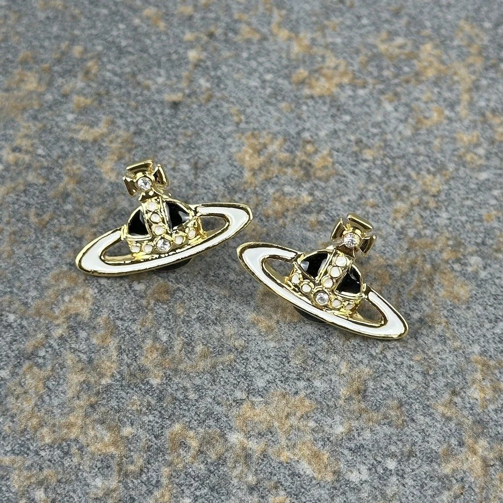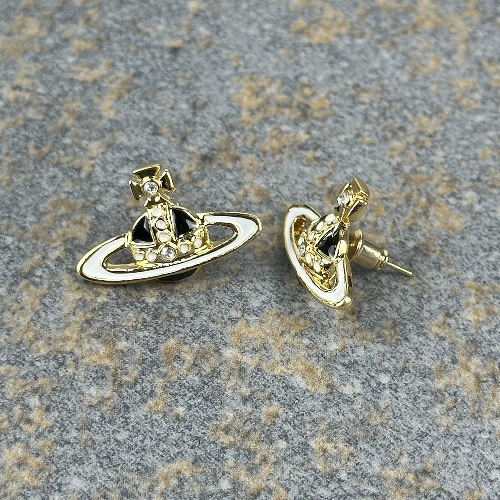 Homevivienne westwood earrings, Gold, White & Black Orb Studs With White Crystals